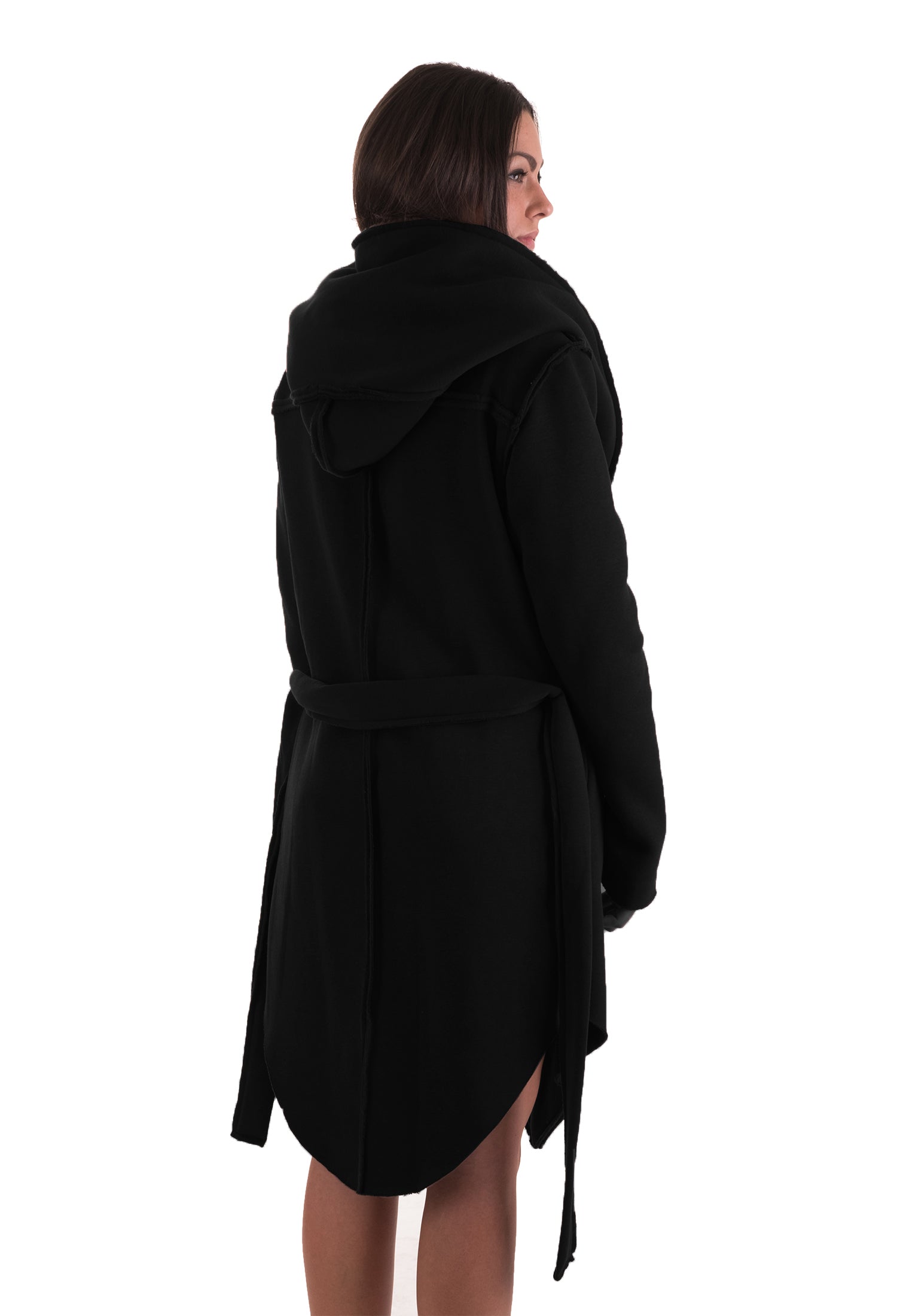 TheG ručně vyráběný černý kardigan 2.0 s prošívaným vzorem a obrovskou šálou vpředu s kapucí, doplněn o kapsy a látkový pásek. Svým atypickým tvarem je vhodným doplňkem pro každodenní nošení. Je ideální na běžné městské nošení, pokud se chcete odlišit od ostatních, takže Cardigan od TheG je tou správnou volbou.